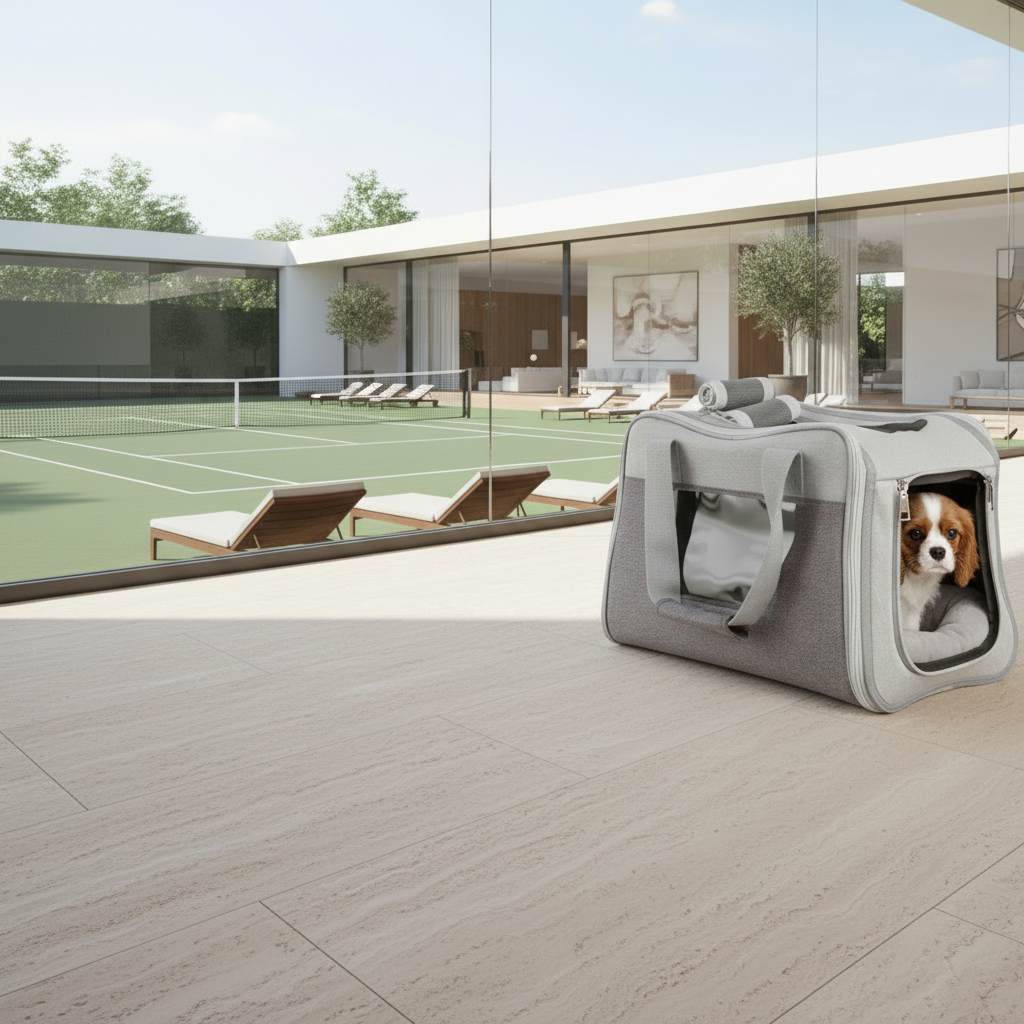 Soms zie je het meteen voor je: een vrouw in een stijlvolle tennisoutfit, zonnebril op, ontspannen wandelend — haar hond comfortabel en veilig aan haar zijde. De Gentle Paws™ Court Carry – Grey Edition is precies voor dat moment ontworpen.