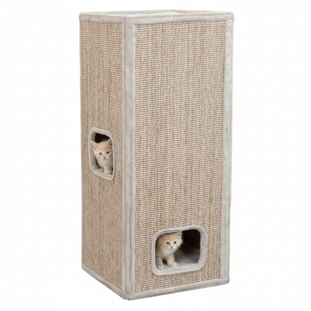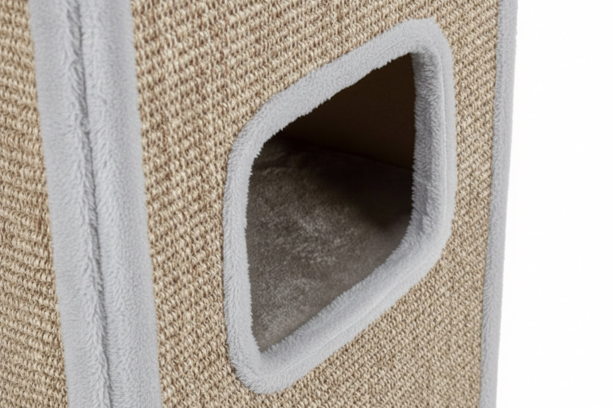 Dankzij de sisal-krabvlakken aan vier zijden heeft je kat altijd voldoende ruimte om natuurlijk krabgedrag uit te oefenen. Het bovenste ligplatform is voorzien van een wendbaar, handwasbaar kussen, zodat comfort en hygiëne perfect samengaan. De rustige grijstint past moeiteloos in elk interieur en sluit mooi aan bij de zachte, verzorgde uitstraling van de Gentle Paws collectie.